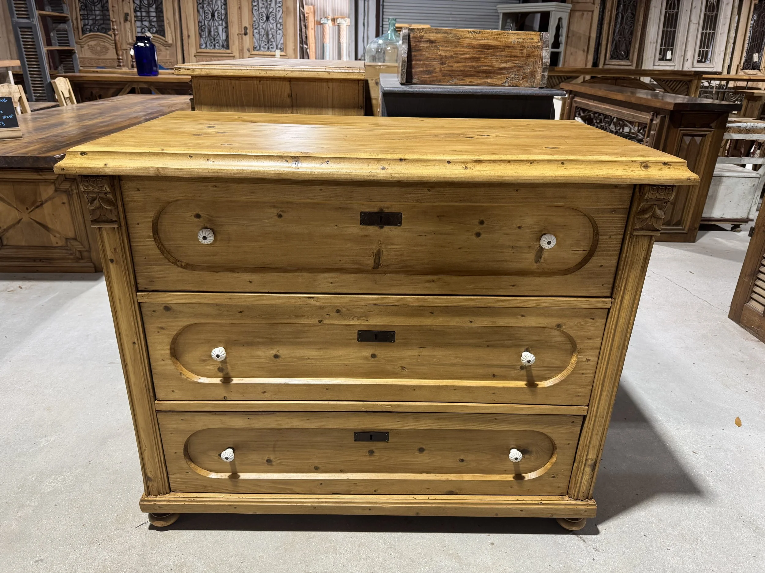 A fan favorite is the antique pine chest of drawers. It’s the piece that customers buy over and over again. Once you get one, you know you must have another one for a different room. Circa 1890’s, European and the drawers slide like a dream! Our most requested for use is as a nursery changing table. Then voila, you have a beautiful antique that can follow your child for life. These antiques arrive ready to go with either a waxed finish as shown or painted.